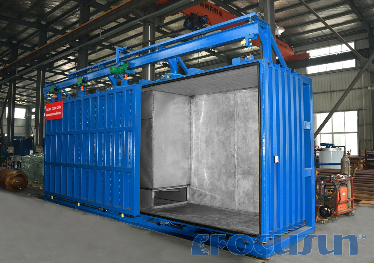 The most rapid deterioration of your fresh produce or products takes place right after it has been harvested which is called internal field heat. Vacuum cooling machine is one of the most fast and effective way to reduce the internal temperature of your product from field temperature to ideal storage temperature. However, research indicated that the average moisture loss is 1% for each 5 to 6 degree temperature drop, that means vacuum level is too high, resulting in excessive loss of moisture and frostbite of fruits and vegetables. Since produce is sold by weight, besides standard vacuum cooler, a hydro vacuum cooler is also designed and manufactured to meet specific requirements, such as to cool the products to ultra-low temperature. With an additional water circuit and control, hydro vacuum cooler can prevent the excessive removal of moisture and improve the cooling rate.